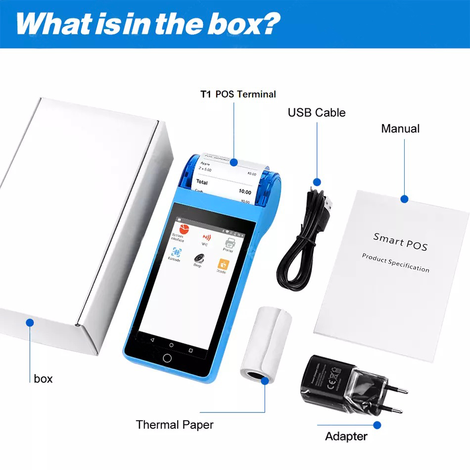 T1N is Android 7 system 5 inch full HD touch screen Pos Terminal,with 4G WIFI Bluetooth 58mm in-built thermal printer,QR Barcode Scanner,GPS and NFC contactless card reader.It can be widely used for parking system,mobile payment,food delivery,restaurant online order etc.